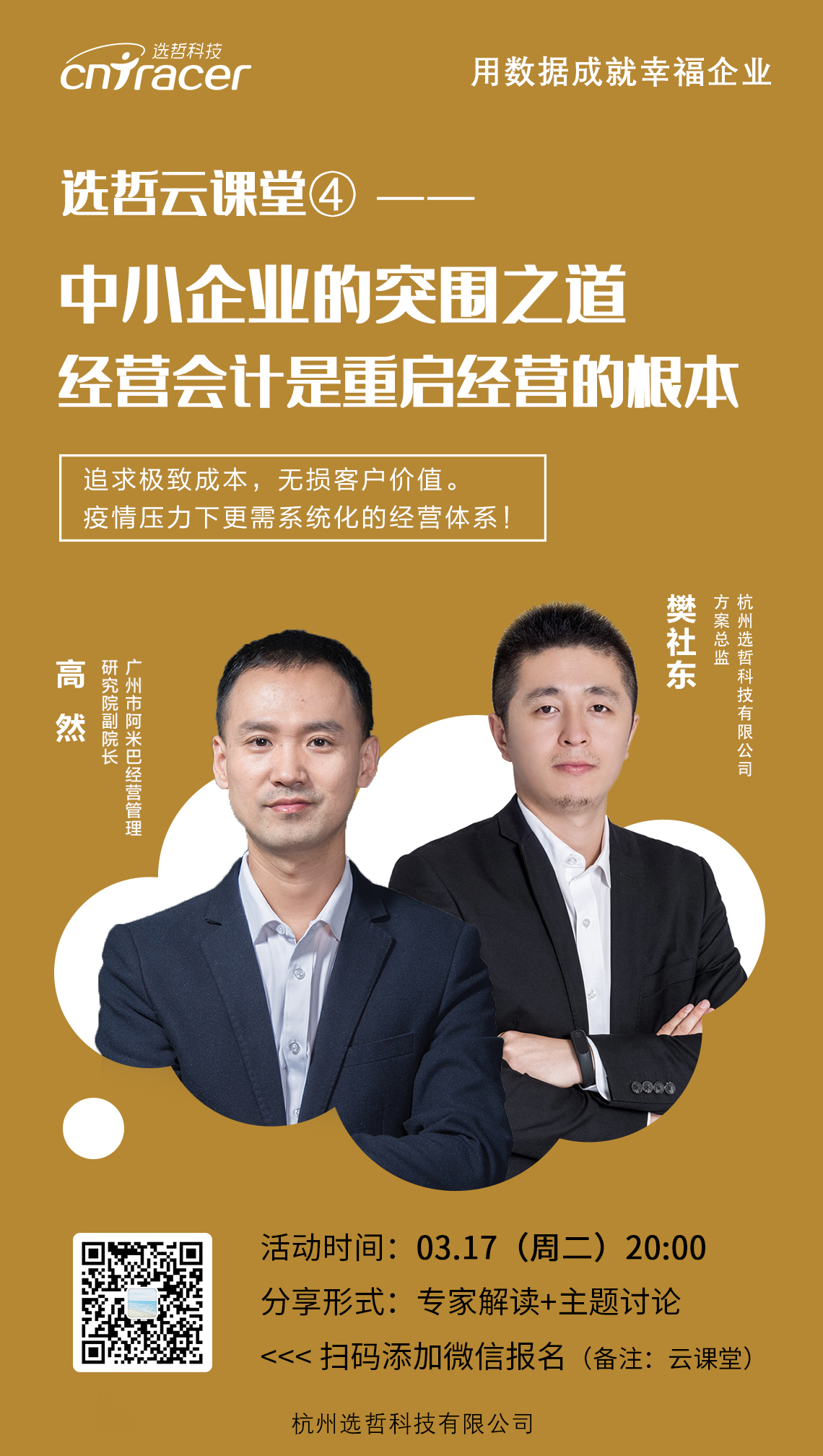 3月17日(周二)晚 20:00,“选哲云课堂④:中小企业的突围之道——经营会计是重启经营的根本”与您线上相约。